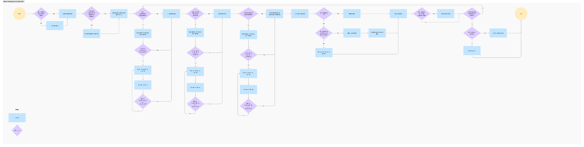 Once we defined the key design implications, I created a user flow for the process a team member would take to complete an assessment. While this did not end up being the exact process followed in the final design, creating the user flow helped me understand how I could further improve the process.