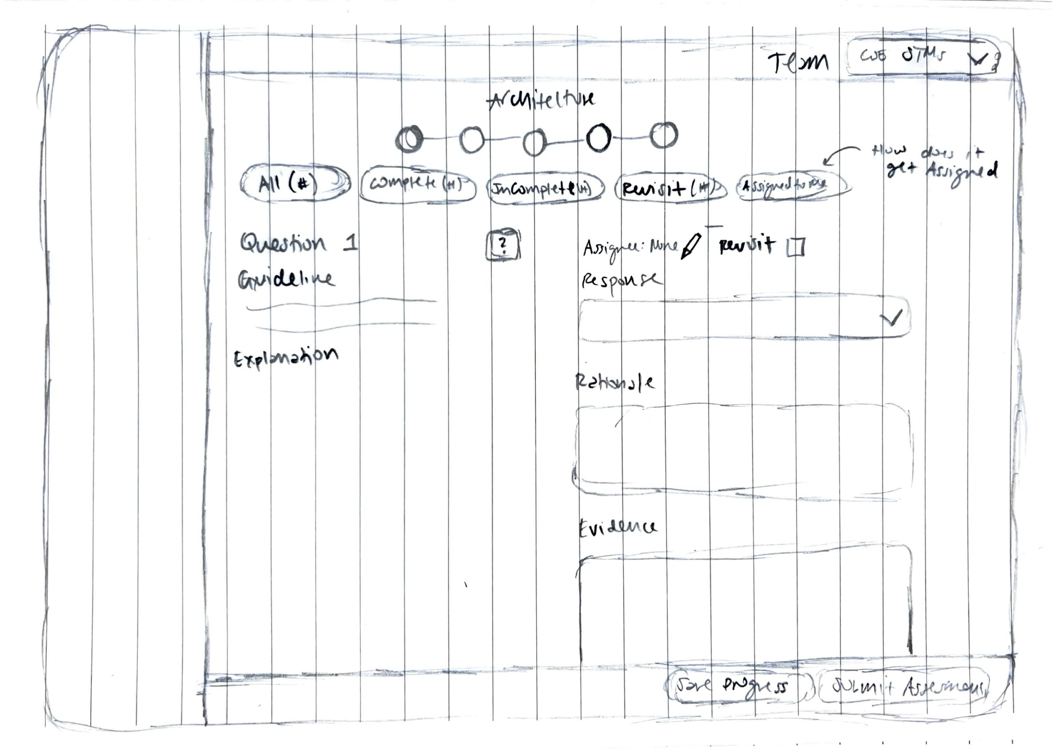 All users cited difficulties inputting their responses and evidence due to space and wrapping issues. A view with more responsive inputs and more space would allow users to answer the questions more efficiently.
